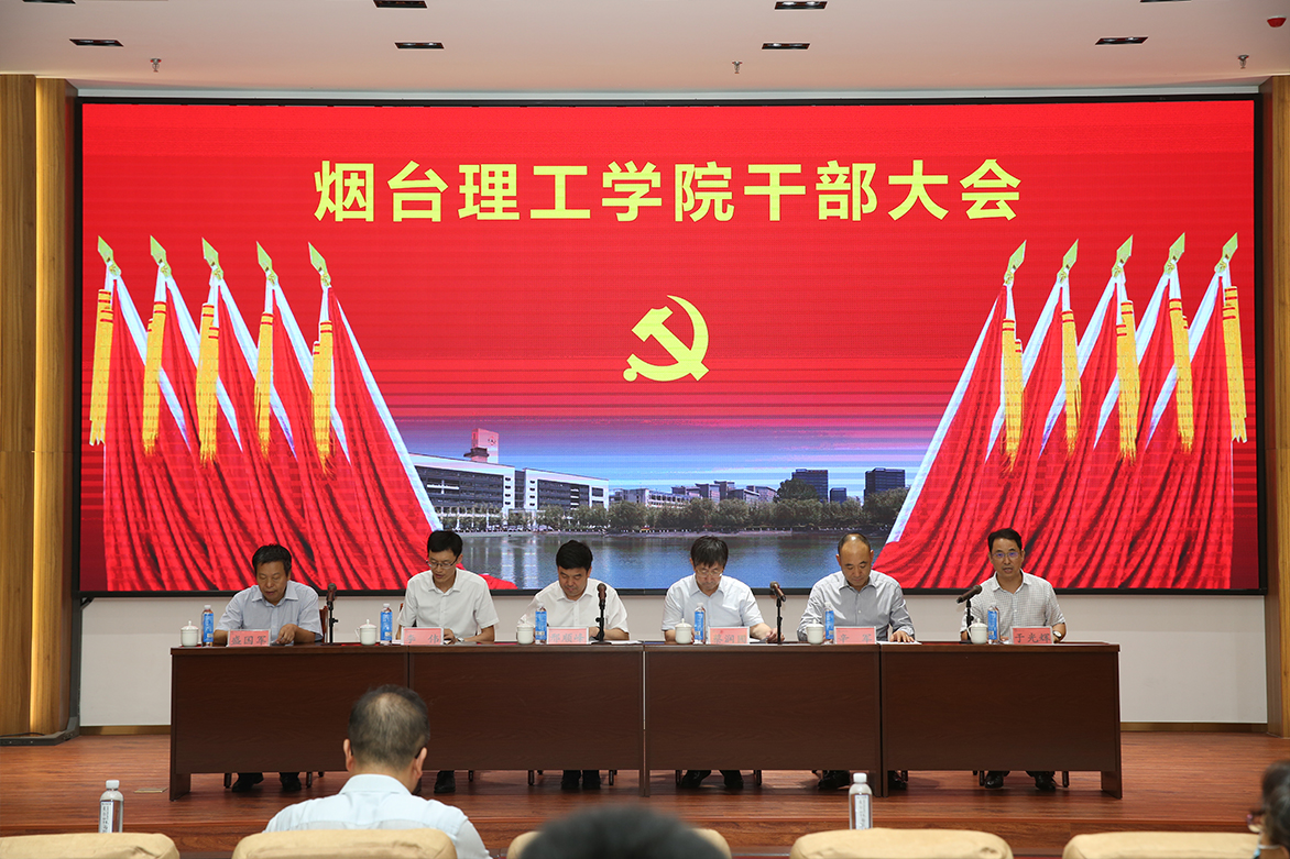 8月5日下午,煙臺理工學(xué)院召開干部大會,宣布煙臺理工學(xué)院黨委書記任職決定。省委教育工委委員,省教育廳黨組成員、副廳長邢順峰,省委教育工委高校干部處副處長李偉,煙臺市委教育工委常務(wù)副書記,市教育局黨組書記、局長蔡潤圃,煙臺理工學(xué)院新任黨委書記盛國軍,祥隆企業(yè)集團(tuán)董事長、煙臺理工學(xué)院董事長辛軍出席會議。校董事會成員、學(xué)校領(lǐng)導(dǎo)班子成員、中層以上干部、教授代表、民主黨派代表等參加大會。煙臺理工學(xué)院校長于光輝主持會議。