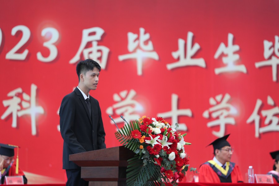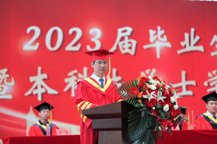 奏唱國(guó)歌后,黨委書記盛國(guó)軍宣讀《關(guān)于表彰2023年優(yōu)秀本科畢業(yè)論文的決定》、《關(guān)于表彰2023屆優(yōu)秀畢業(yè)生的決定》和《關(guān)于表彰獎(jiǎng)勵(lì)2023屆志愿服務(wù)西部計(jì)劃畢業(yè)生的決定》。