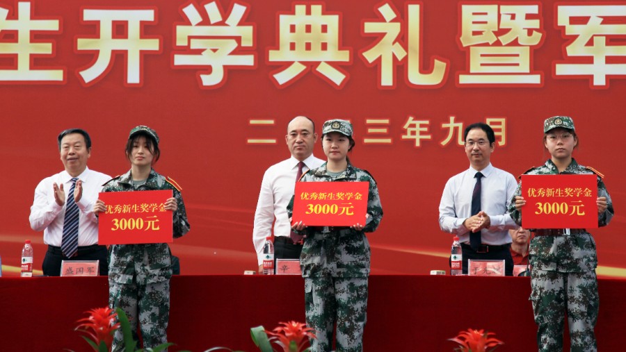 學院領(lǐng)導為高考優(yōu)秀學子頒發(fā)新生獎學金。