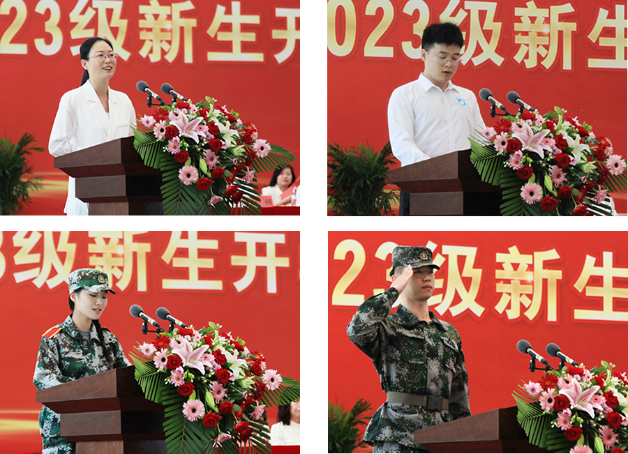 教師代表于巧麗老師,老生代表人工智能學院丁天舉同學,新生代表經(jīng)濟管理學院王玉鳳同學,軍訓教官代表張開源分別上臺并發(fā)言。