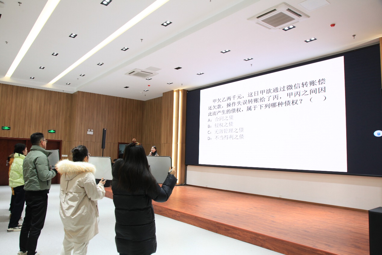 決賽采用線下積分制,由集團聯(lián)隊、地產(chǎn)集團、商管公司、礦業(yè)集團、科技集團、健康集團六支代表隊參賽。決賽第一輪分必答題、搶答題、差異化賦分題三個環(huán)節(jié),題目涵蓋了憲法、民法等多方面法律知識,充分考察各代表隊的法律知識水平和臨場應(yīng)變能力。最終得分前兩名礦業(yè)集團代表隊和科技集團代表隊進入第二輪決賽。