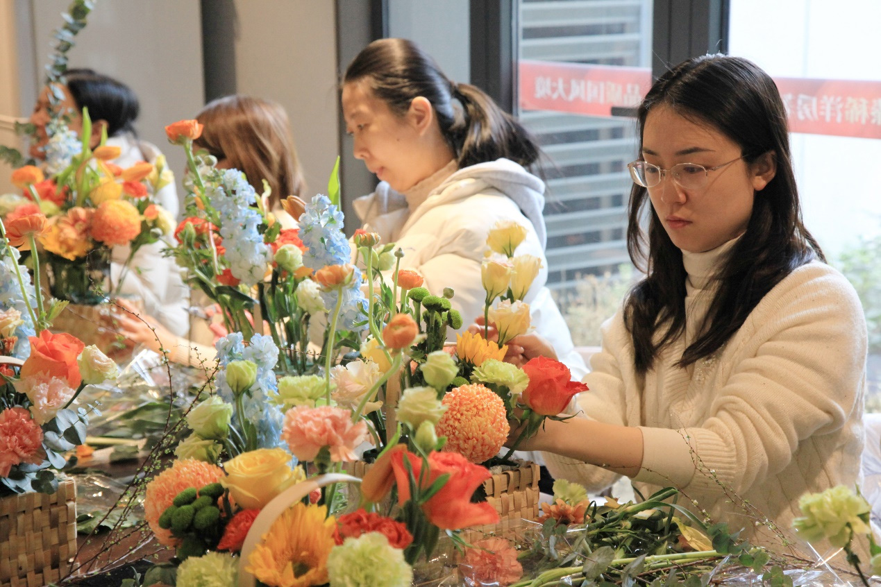 根據(jù)老師的講解,大家發(fā)揮自己的想象力和創(chuàng)造力進(jìn)行創(chuàng)作。室內(nèi)花香彌漫,洋溢著春天的氣息,隨著一剪一修的細(xì)致操作,一籃籃形態(tài)各異、色彩斑斕的插花作品逐漸呈現(xiàn),它們不僅象征著祝福與美好,更是女員工們心靈手巧的見(jiàn)證。
