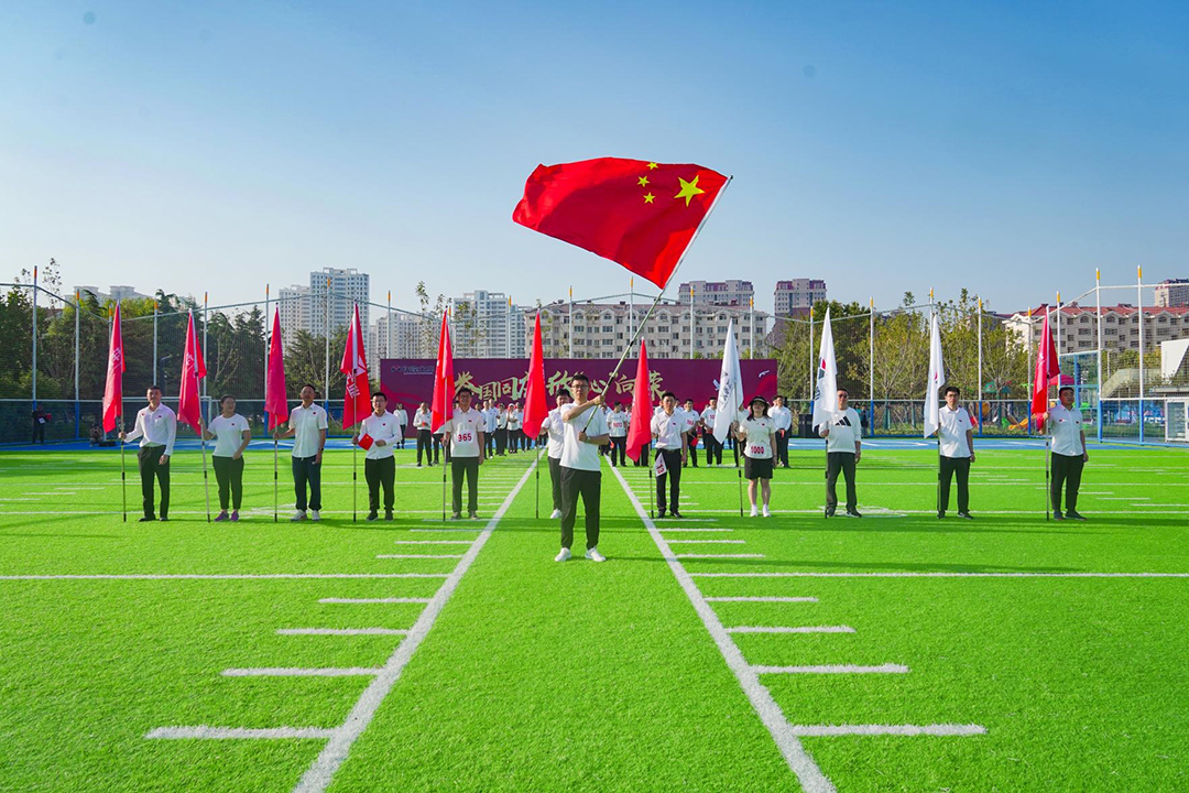 7時許,鳳凰湖公園東門已是人聲鼎沸,來自集團(tuán)各產(chǎn)業(yè)的參賽者們身著統(tǒng)一服裝,精神抖擻地集結(jié)?,F(xiàn)場氣氛熱烈,國旗、司旗交相輝映、迎風(fēng)飄揚(yáng),員工精神飽滿,斗志昂揚(yáng),現(xiàn)場洋溢著濃厚的節(jié)日氛圍。